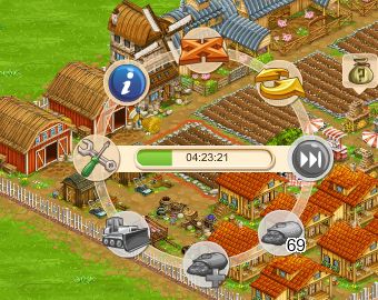4. прозорецът изчезва и се вижда само фермата, която разглеждате - с възможност за избиране на постройка /все едно влачите нещо с мишката и му търсите място - аналогично както при местене на постройки из фермата или както при избор за започване на производство/.