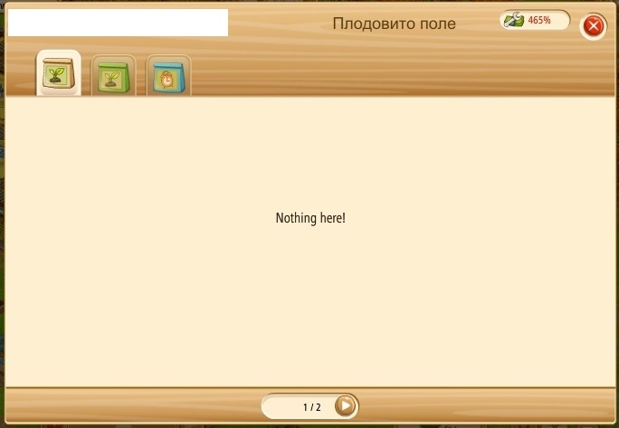 Така остава след обирането. След рестарт на игра, браузър, кеш и т.н. се вижда, че нищо не е обрано. Опитах да насея полетата с нещо, но са изчезнали семената.