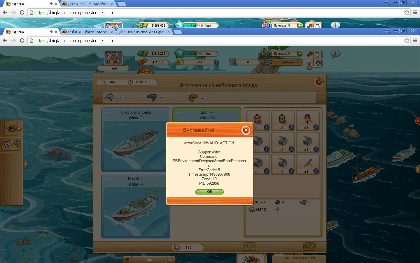 Здравейте изскам да попитам какво да направя имам задача купи си лодка така купих си две.заредих ги с оборудване и не мога да ги пратя на улов нямам локва изписва не е налично.