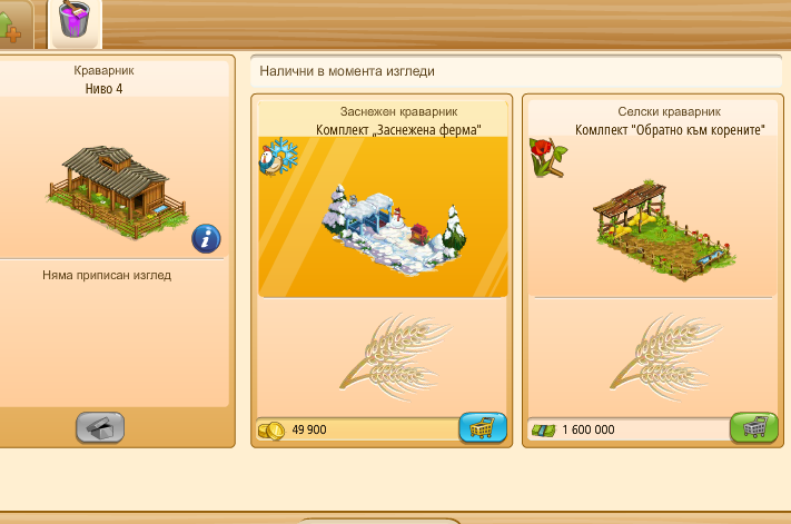 които се закупува с долари и Заснежена ферма за злато, а моите ги няма. Монетите обаче ми ги взе...