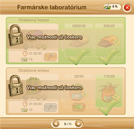To není devátá úroveň.To je devátá stránka receptů.V desáté úrovni laboratoře se otevře jen prvotřídní krmivo pro kachny,které je na páté stránce receptů,v osmé úrovni,prvotřídní tekuté hnojivo na čtvrté straně