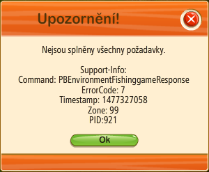 Když kliknu na rybu ,aby se spustilo nahození prutu s návnadou nic se neděje .....prut sice nahodí ,ale bez šňůry tak musím úplně opustit hraní a znovu se připojit k chytání ryb. Tak to je třeba 5x a po 6 se záhadně objeví šňůra s návnadou. Pak se ryby tahají už celkem dobře.