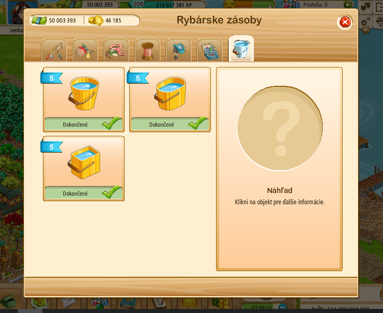 Narazila som vsak na problem, ze po mne chce kupit velke vedro (uloha), ale ja som ho uz predtym kupila cele (5. stupen) a teda tu ulohu uz splnit neviem ale ono to ako splnene neeviduje.