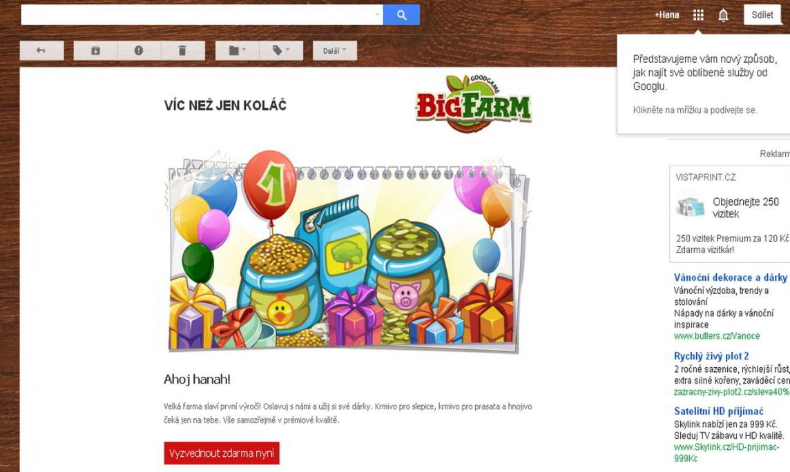 Podívejte se do registračního emailu, měl by Vám tam dojít dárek k prvnímu výročí BIG FARM.