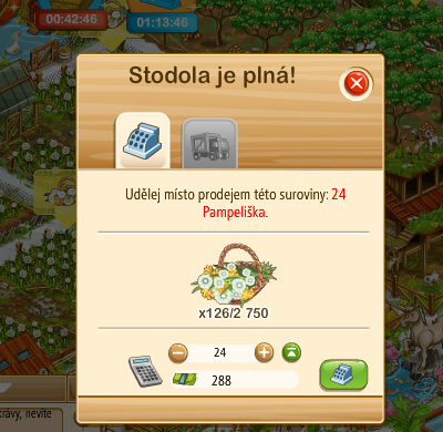 Proč mi od spuštění události vyskakuje stále tato hláška? ve stodole mám 126 pampelišky, sklad mám na 2750 a chci přidat 24 pampelišky a píše mi to, že mám plnou stodolu.
