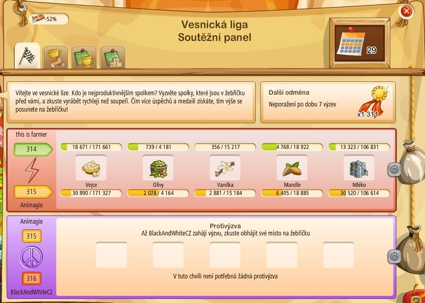 Jinak narazil jsem na paradoxní situaci - podali jsme výzvu a spolek nad námi nemá méně surovin, má jich víc! Vzhledem k tomu, že máme výhodu volby času i složení košíku tak je navíc výhoda množství už docela drtivá... Nevíte, jestli to je záměr, nebo to mají rozbité?
