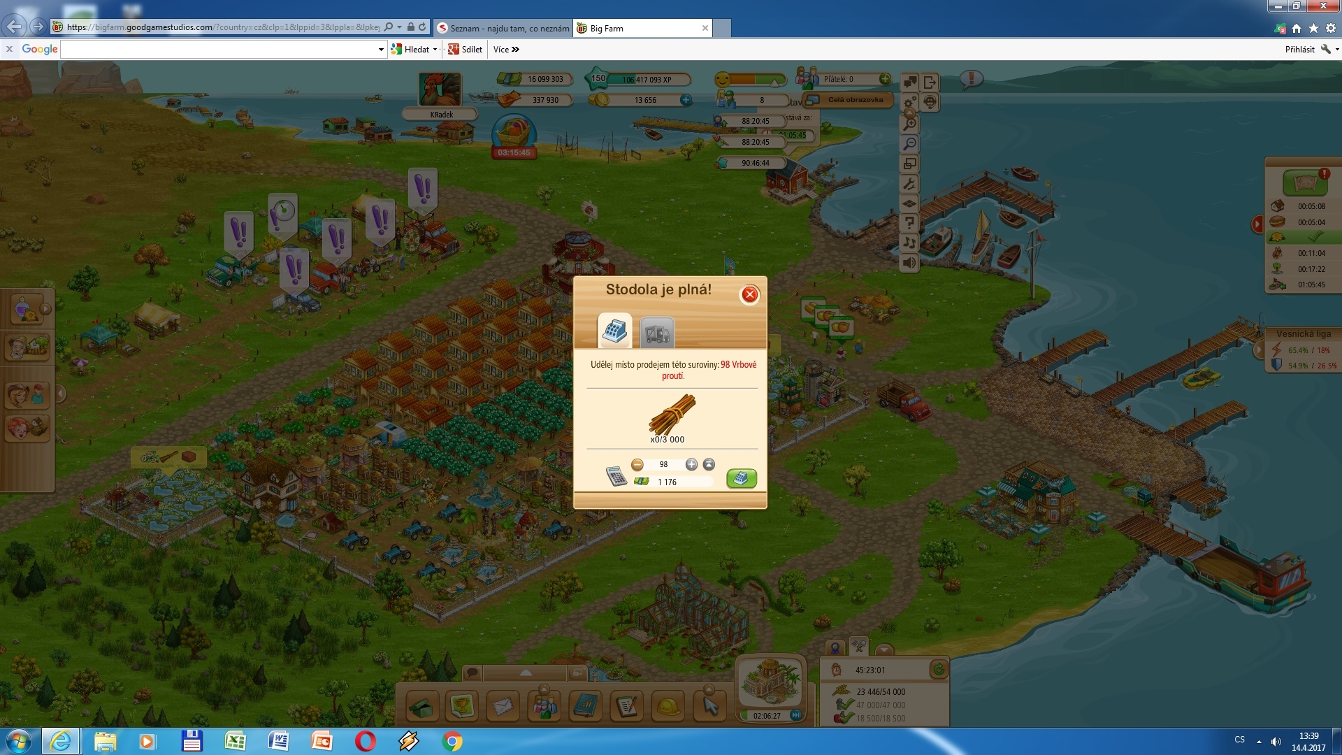 Prosím o radu. Dala jsem si ke dvoum polím remízky a teď mi to nejde sklidit. Stále mi to hlásí že stodola je plná, přitom ve stodole mám nulu a nesklidí se nic. Ani kytky ani dřeviny. Klikám stále dokola, už jsem i restartovala hru a stále to tam mám připravené ke sklizni. Co s tím?
