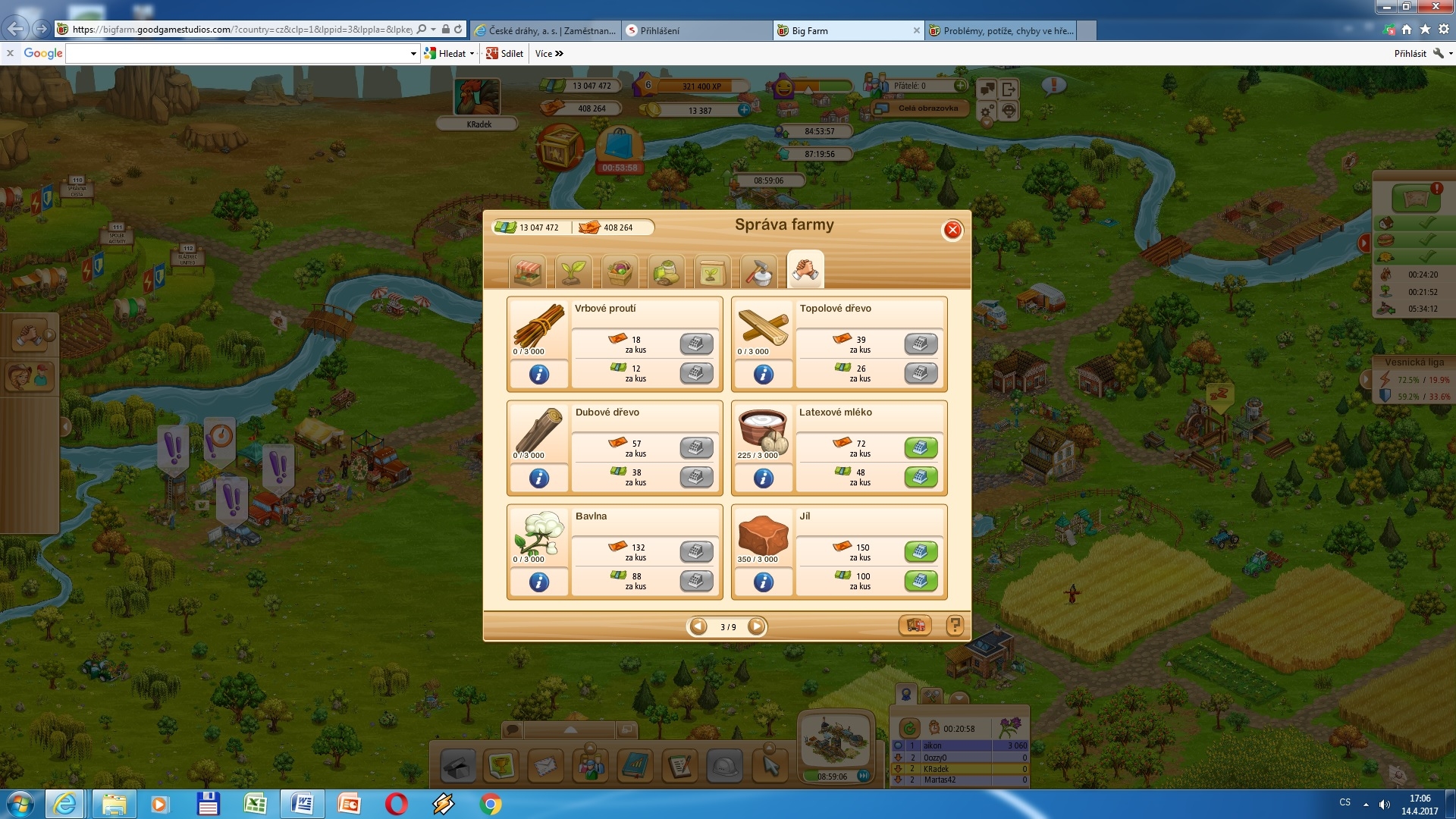 prosím, nejdou mi sklidit dvě pole na hlavní farmě, hlásí mi to, že mám dubového dřeva hodně, že to mám prodat, prodala jsem to všechno a stále mi to nejde sklidit
