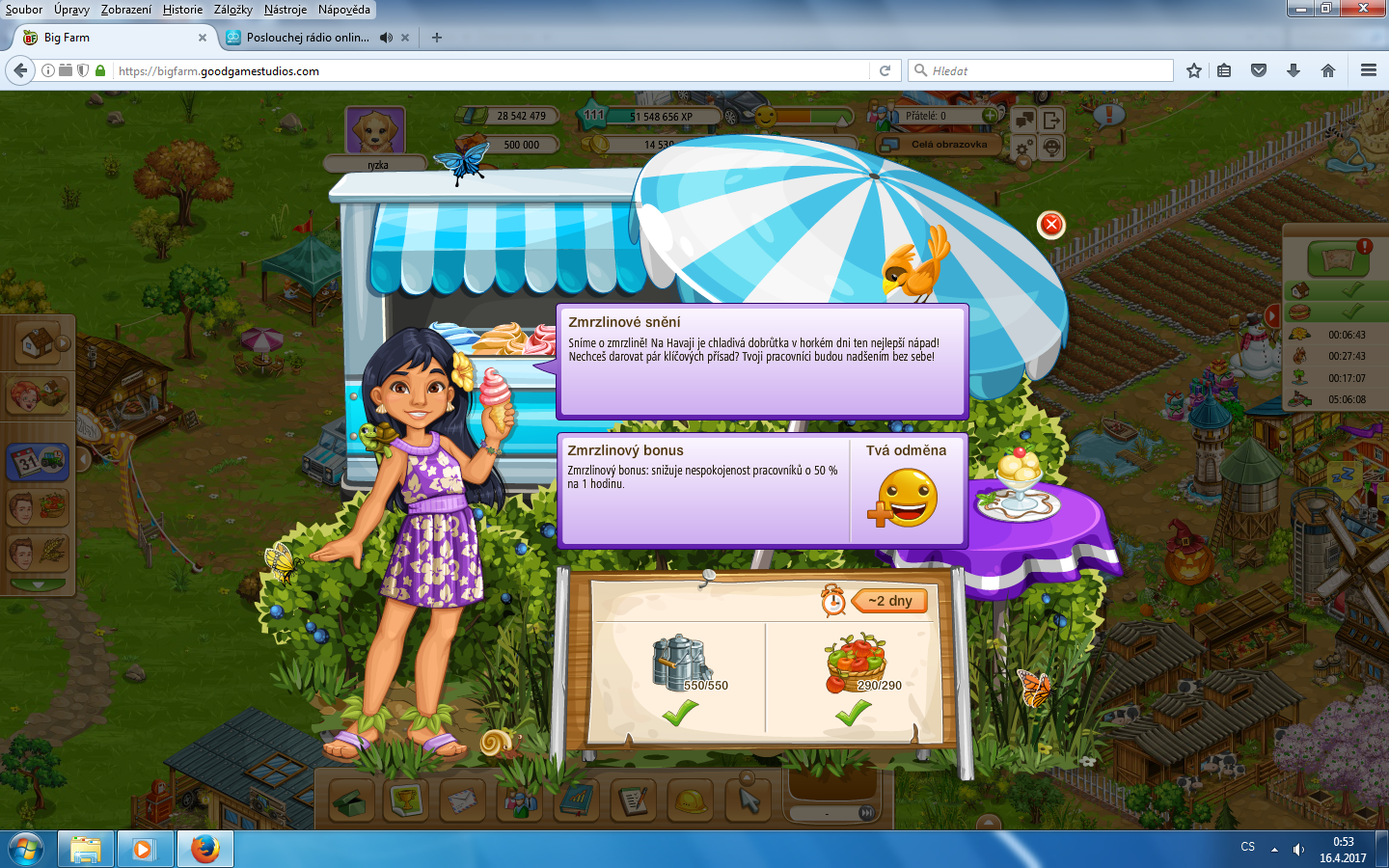 Omlouvám se, mám tam jenom půlku obrázku, takže nejde odklikávat darované jablka a mléko už od začátku akce .