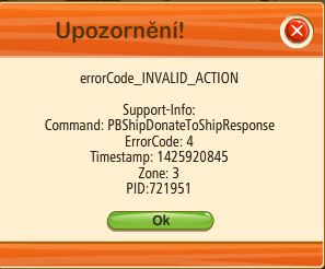 Druhá chyba se týká dodávání produktů na loď, to se může zobrazit při špatné odezvě se serverem, kdy se tam jedna dodávka jakoby započítá dvakrát. Měla by zmizet po zavření, pokud ti nepůjde dokončit dodávky na loď, tak opět aktulizovat stránku.