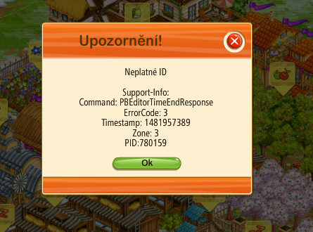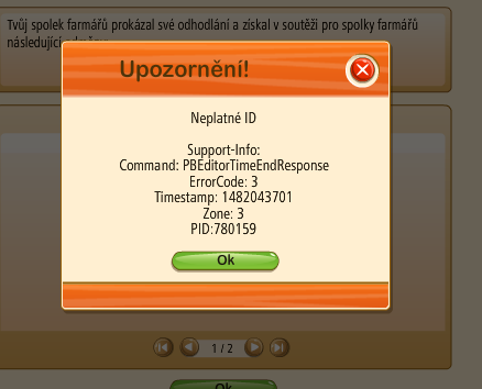 tabulka Error-neplatná ID při načtení farmy se mi objevuje také. Přejdu na jinou farmu a je vše v pořádku. To asi nebude v našich PC.