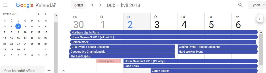 A snad bude fungovat i ten kalendář na google, viz: Important - WWC Calendar Information