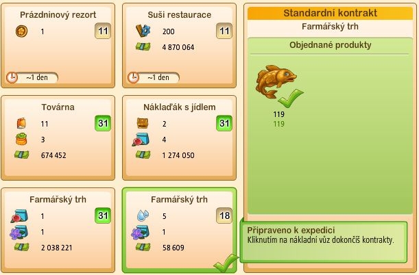 Takhle.. na organickém trhu se ti stane, že můžeš plnit jeden kontrakt za druhým a splnit je všechny najednou? Já tedy nevím, ale na některých pracuju snad i týdny. A že je to podobné i na rybím trhu? To mě nepřekvapuje. Koneckonců já nemusím mít všechno hned. Víte, on na rybím trhu není žádný žebříček hráčů, netřeba se někam honit Prostě pracujte s tím, co teď máme. Víte, že k nějakým změnám má dojít. Ale pořád jen dokola tady nadávat na totéž místo toho hledat jiné možnosti, mi přijde trošku jako ztráta času.
