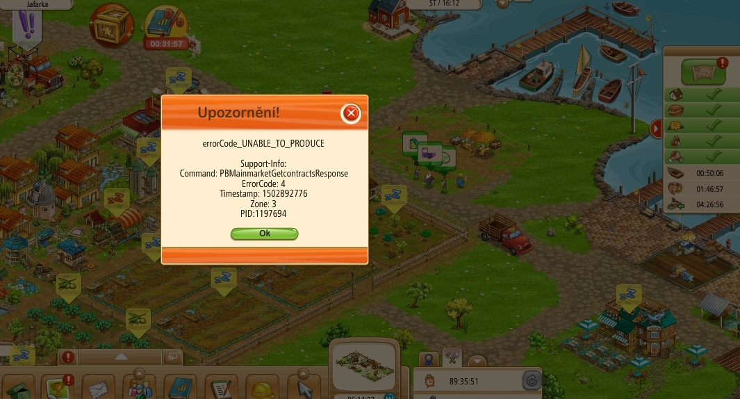 Dobrý den, po dnešní údržbě = 16.8.2017 se mi všude v Big Farm objevuje tento nápis a špatně to funguje: