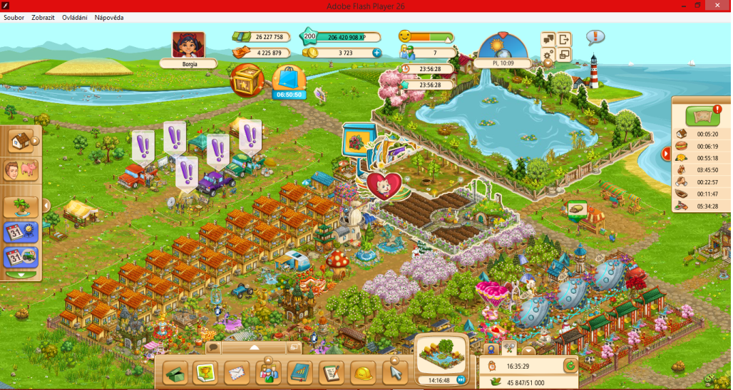 Jasně. že na první pohled to uhrát je nemožné (MUDr.Chocholoušek je asi jiného názoru). O hodně vykartáčované kachně, že tady někdo z programátorů hraje, jsem už taky psal. Chtěl jsem se ale pozeptat na obchod s bonusy, proč je uváděn v %. Už podruhé se mi stalo, že obnovím hru, zjistím za kolik min. doběhne úroveň, abych přihodil produkty, běží mi bonus na 20%, minutka nastavená se 7min. rezervou abych to neprošvihl, a hle, už jsem v tuřínu.. Jestli bonus zkracuje čas v závislosti na množství navýšených bodů, tak věž vám to neřekne. Přepočet na nějaké % se musí někde odrazit, nějak jsem nepochopil ani z čeho se to počítá, jako jsem na 7b/s, tak kolik je navýšení o 20%?Jo já zapomněl, tyhle informace jsou tajné. Bug.TOP SECRET.