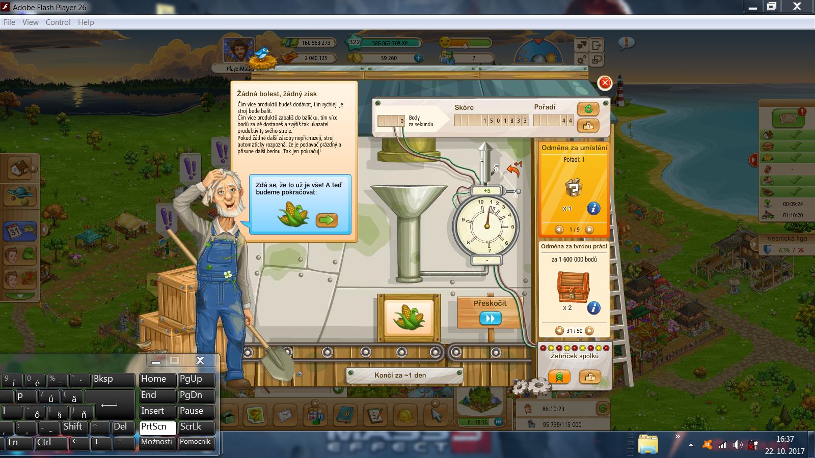 takze JA SOM PRAVE SKONCIL PRED POL HODINOU V SUTAZI-jednducho sa mi to zaseklo a neponuka dalsie suroviny a ani ta kukurica sa neda zbierat co tam mam ako poslednu........super praca-kopa zlata a dolarov a hlavne casu v .....som zvedavy ci niekto pomoze s tymto....bol som 42hy +5bonus atd.....