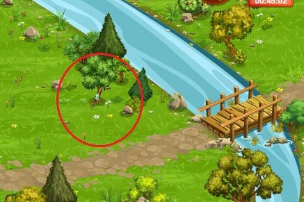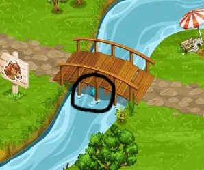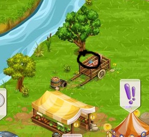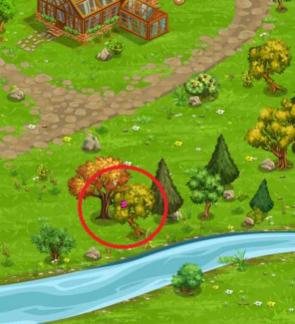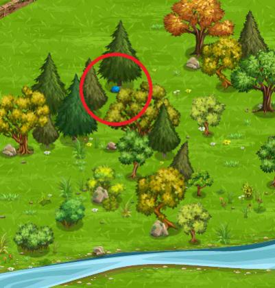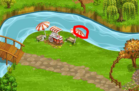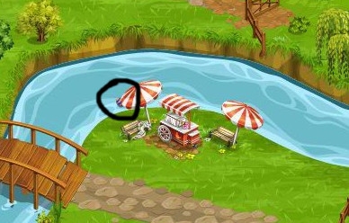 - pod stánky vlevo mírně dolů- u řeky za zatáčkou strom u řeky