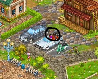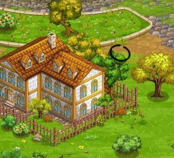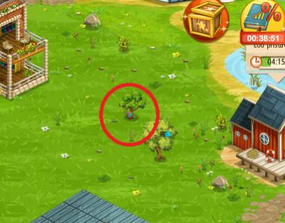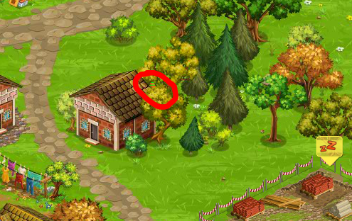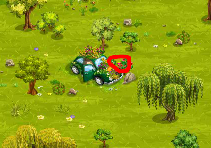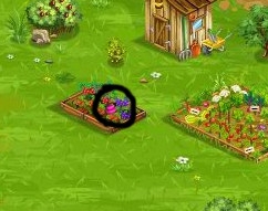 Na květinové farmě je ukrytá ve zlatém keříku oranžová kraslice. Barvy zase dost splývají.