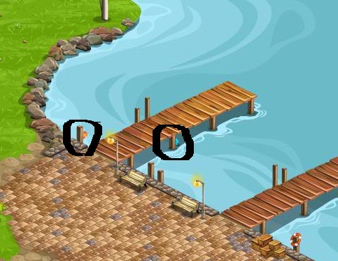 -1. molo (od rybáře vlevo) - 2.svislá laťka - nad vodou