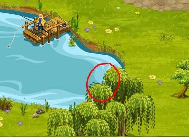 °vrba na kraji rybářského rybníčku - úplně vpravo dole - když objíždíš myší korunu vrby, která přesahuje na modrou plochu - je tam občas modrá kraslice, která není moc dobře rozlišitelná od podkladu.