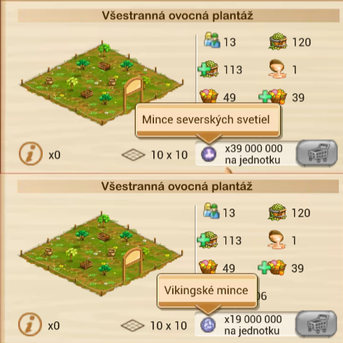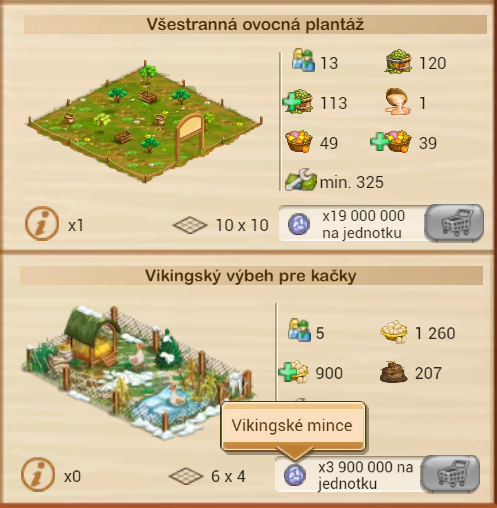 Mňa zaujala zmena ceny za všestranný sad na kvetinu u vikingov. 39 000 000 rún bolo dosť. A ešte jeden by som chcela. Ale štve ma, že tá farma nejde 30 dní, ale menej.