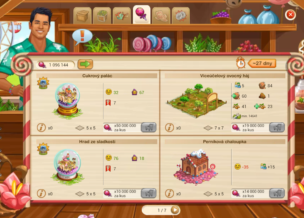 Všestranný sad na KF za lízatká nekúpiš. To len v zimných farmách. Ale nakoniec sa mi ho podarilo nahrať v nedávnej vikingskej farme. Táto ako jediná ostala normálna. Aj v nej zlacneli zimné kačky, takže nákup sa mi podaril aj tu. Sladká farma ma nikdy neoslovila. A teda tých 20mil. poukážok, za ktoré som dostala „iba“ 10mil. lízatiek som utratila za nákup zlatých tajomných škatúľ. Nič lepšie tam nie je. Nakoniec to bol dobrý nápad, v tých škatuliach boli semená zlatých kvetov a licencie na zlato.