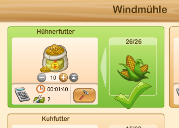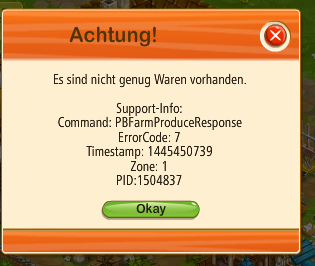 Wenn ich Hühnerfutter produziere und der Bestand auf "0" geht, erhalte ich eine Fehlermeldung.