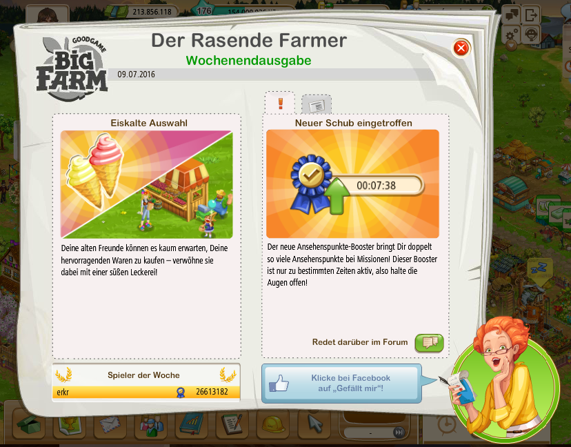 ich hab jetzt auch einen Booster: doppelte Ansehenspunkte für jetzt noch 164 h