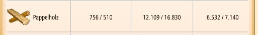 dazu ist mir eben noch aufgefallen: 6532 Pappelholz von maximal 7140 in de Onlinemenge