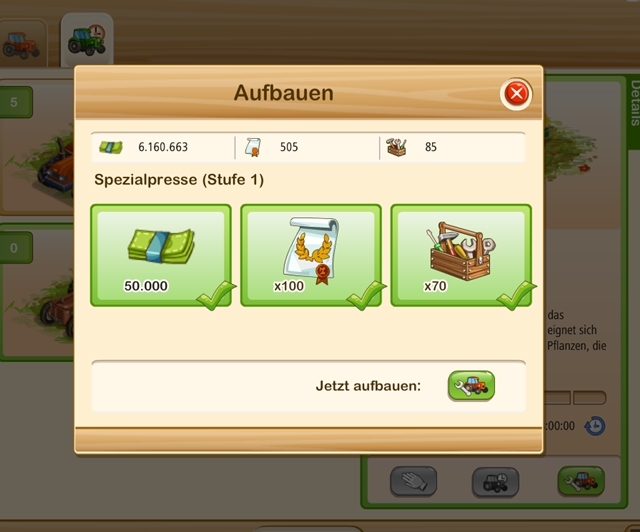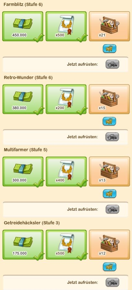 seit dem Update von gestern, 22.11.'16, sind bei mir die Bedingungen/Voraussetzungen zum weiteren Ausbau der Maschinen in der Garage geändert. Ich benötige jetzt deutlich weniger Urkunden, dafür aber erheblich mehr Werkzeug als bisher.