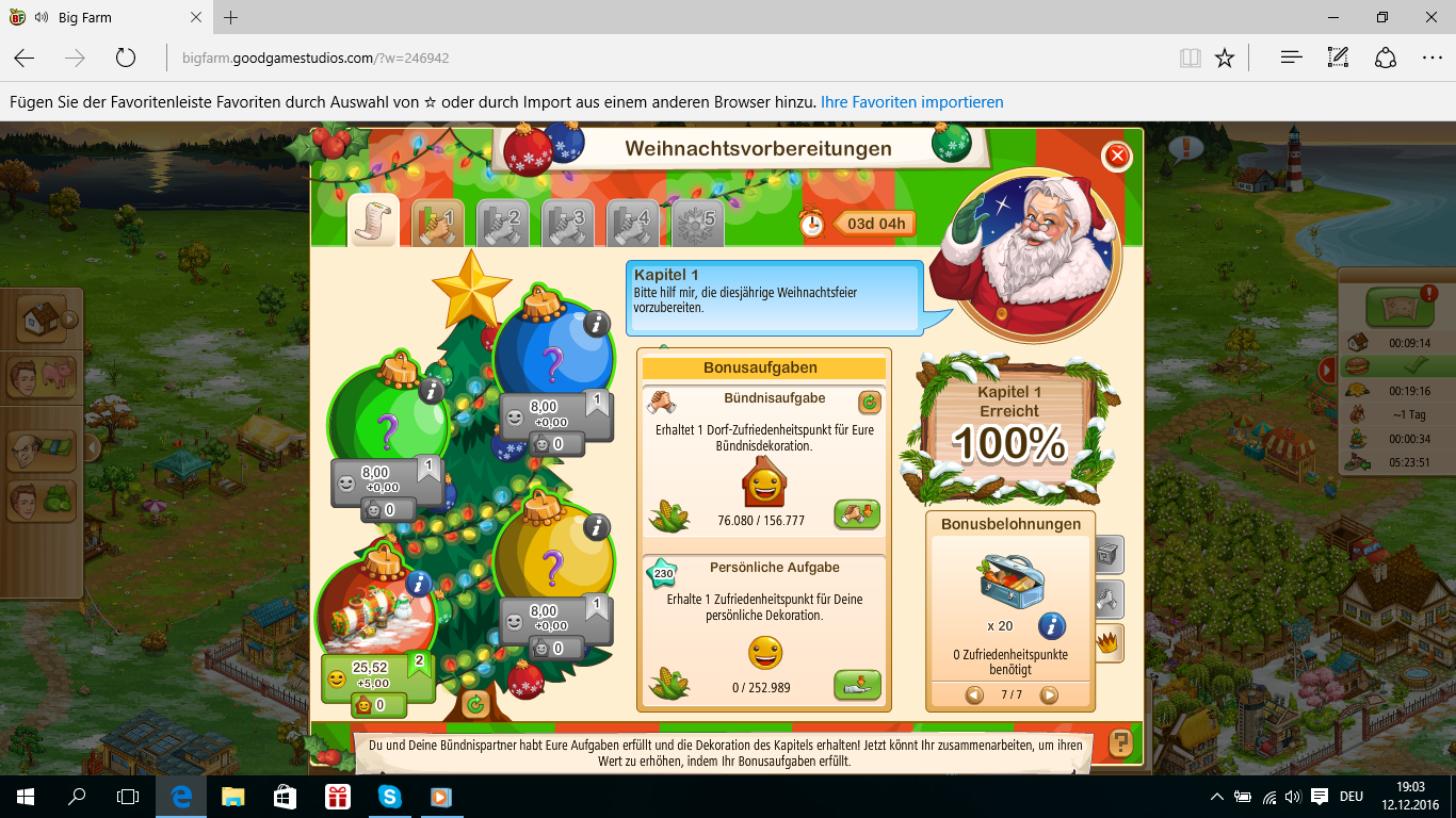 Langsam aber sicher vergeht Jedem in unserem Bündnis der ganze Weihnachtsmist. Die Farmen stehen so gut wie still, die kleinen Level kommen nicht nach mit ihren noch niedrigen Feldern und wir grossen Level bekommen dazu so einen Blödsinn.