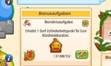 Hallo Flederfalle ich würde erst mal drinnen bleiben vielleicht können dir ja die anderen helfen wenn die fertig sind wir haben für diese Aufgabe 4 Tage Zeit man muss ja nicht die Bündnisaufgabe machen hat unser Bündnis letztes mal auch schon nicht gemacht. Hätten wir zu dritt auch nie geschafft . Ich muss 108000 Äpfel produzieren und obwohl ich gedacht habe , habe ja 12 Apfelplantagen muss ich 48 Std alle 3 Std . ernten.