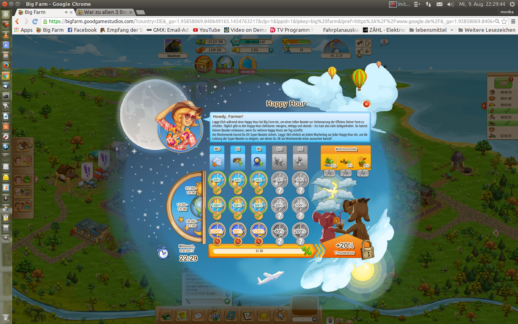 ich habe gestern auch nur 2 booster gutgeschrieben bekommen, obwohl ich zu allen 3 zeiten online und auch aktiv (ernten, säen, farmwechsel, chat usw...) war.