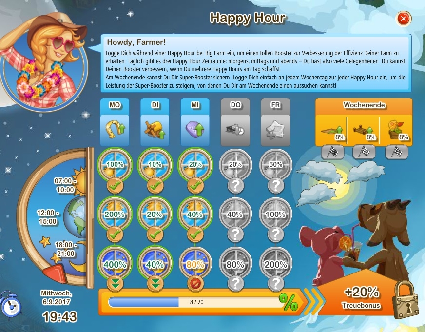Allerdings sollte seit dem Update vom 08.09.2017 die Happy Hour nun korrekt laufen.
