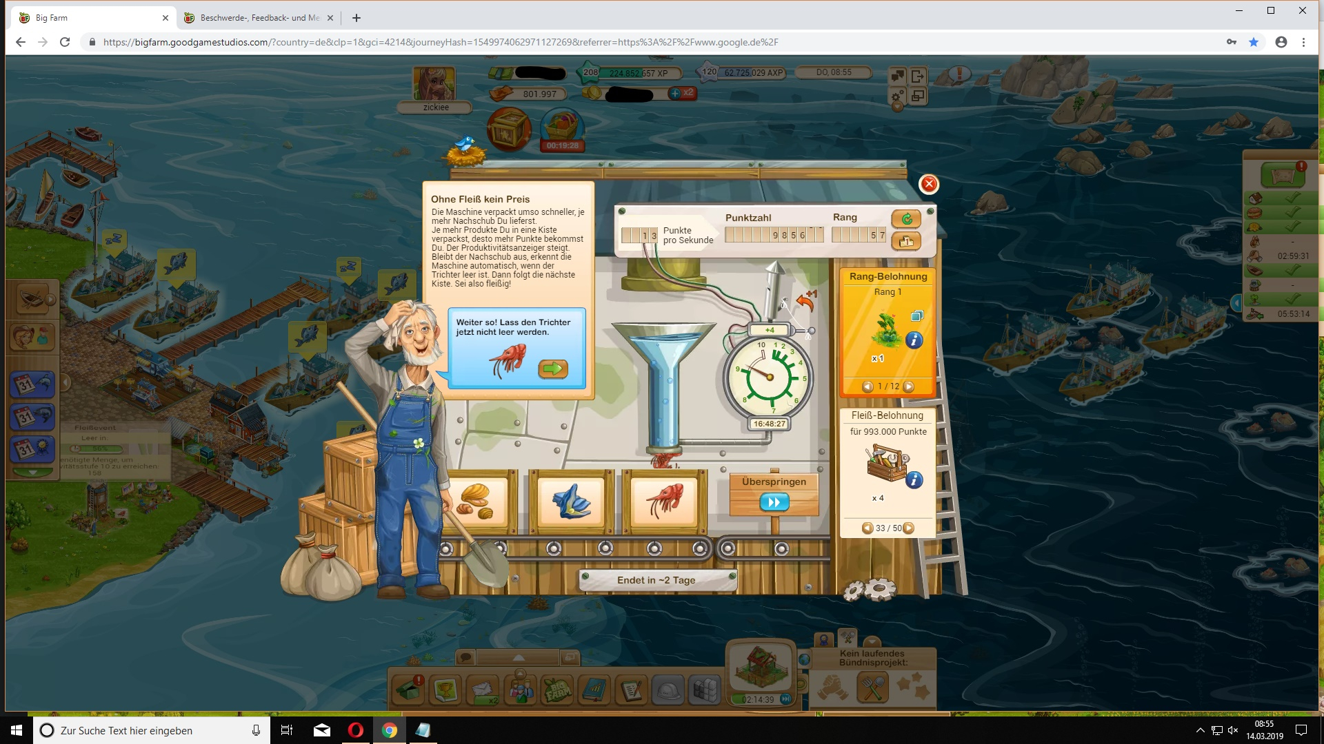 ich wollte nur mal anmerken, dass es schon merkwürdig ist, mit welcher Regelmäßigkeit beim Fleißevent Fischen immer grad die Angelgebiete nicht auftauchen, die man gebrauchen könnte. Momentan bei mir: Die Austern wurden eingesammelt, ......