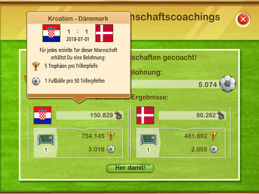 Gerade wurde für das Spiel Kroatin/Dänemark Pokale und Co ausgegeben - aber es kommt ja jetzt erst das Elfmeter schiessen