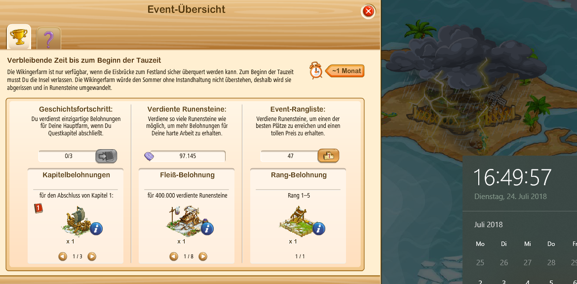 je länger die Insel läuft umso mehr kommt zusammen, da die Hauptaufgaben auch eine Menge an Runen ausschütten