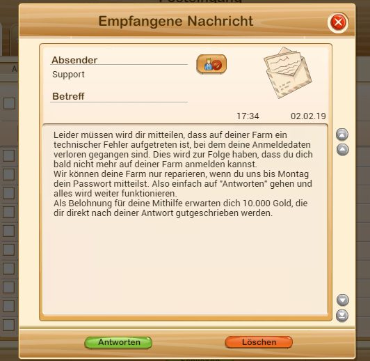 Habe genau die gleiche Nachricht bekommen. Das Gold, das angeblich winkt soll unentschlossene überzeugen, es ist aber dilettantisch, den wir genau wissen, dass GGS nie so viel Gold geschenkt würde. Es sieht so aus als nur Bündnisleiter angeschrieben werden. Meine Mitspieler haben zum Glück keine solche Briefe bekommen. Es ist halt sehr gefährlich für neue Mitspieler, die glauben ab Level 6 schon 1 Bündnis gründen zu müssen und das Spiel gar nicht richtig kennen.