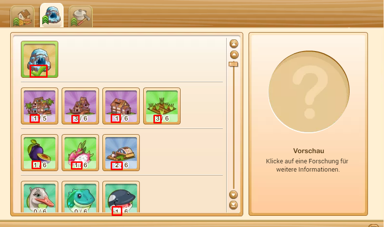 dabei zählt das Freischalten der Farm auch als 1 Forschung: