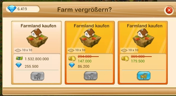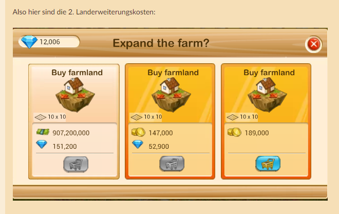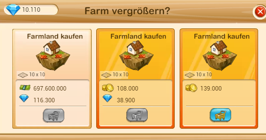 für mich stehen im moment andere dinge an, nämlich die diamanten für die erweiterungen der bisherigen diamantgebäude sowie für die noch zu erwartenden zu sammeln und auszugeben, und dann gehts, vielleicht, an die neuen farmerweiterungen..