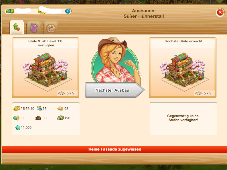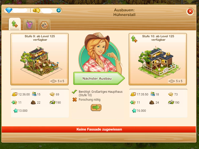 Bei den normalen Ställen u.s.w. wird die neue Ausbaustufe angezeigt, bei den anderen Ställen, Äckern nicht. Also momentan gilt das noch nicht? Anzeigefehler!!?