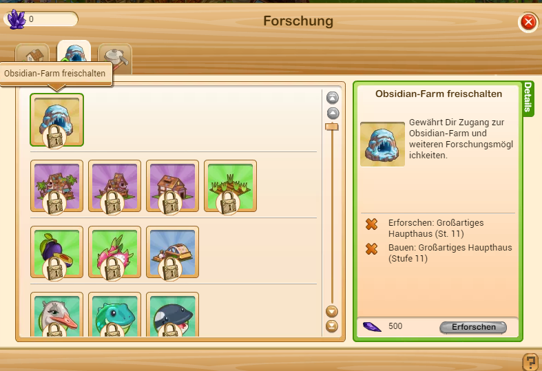 GGS hat doch noch ausreichend Zeit die Themenställe mit einzubinden. Bis wir genug Obsidiane haben um die erste Forschung zu erfüllen vergeht noch etwas Zeit.