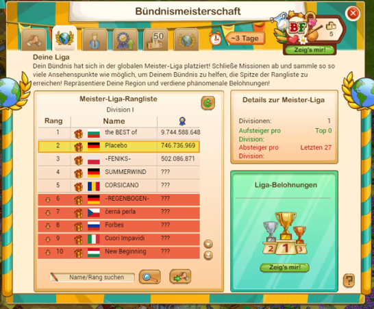 es vermiest jedem bündnis, das sich bislang dauerhaft oder wenigstens ab und an in der meisterliga halten konnte, nicht zuletzt dank vieler spieler die mitmachen, die meisterliga und auch die bümei im allgemeinen auf längere zeit...