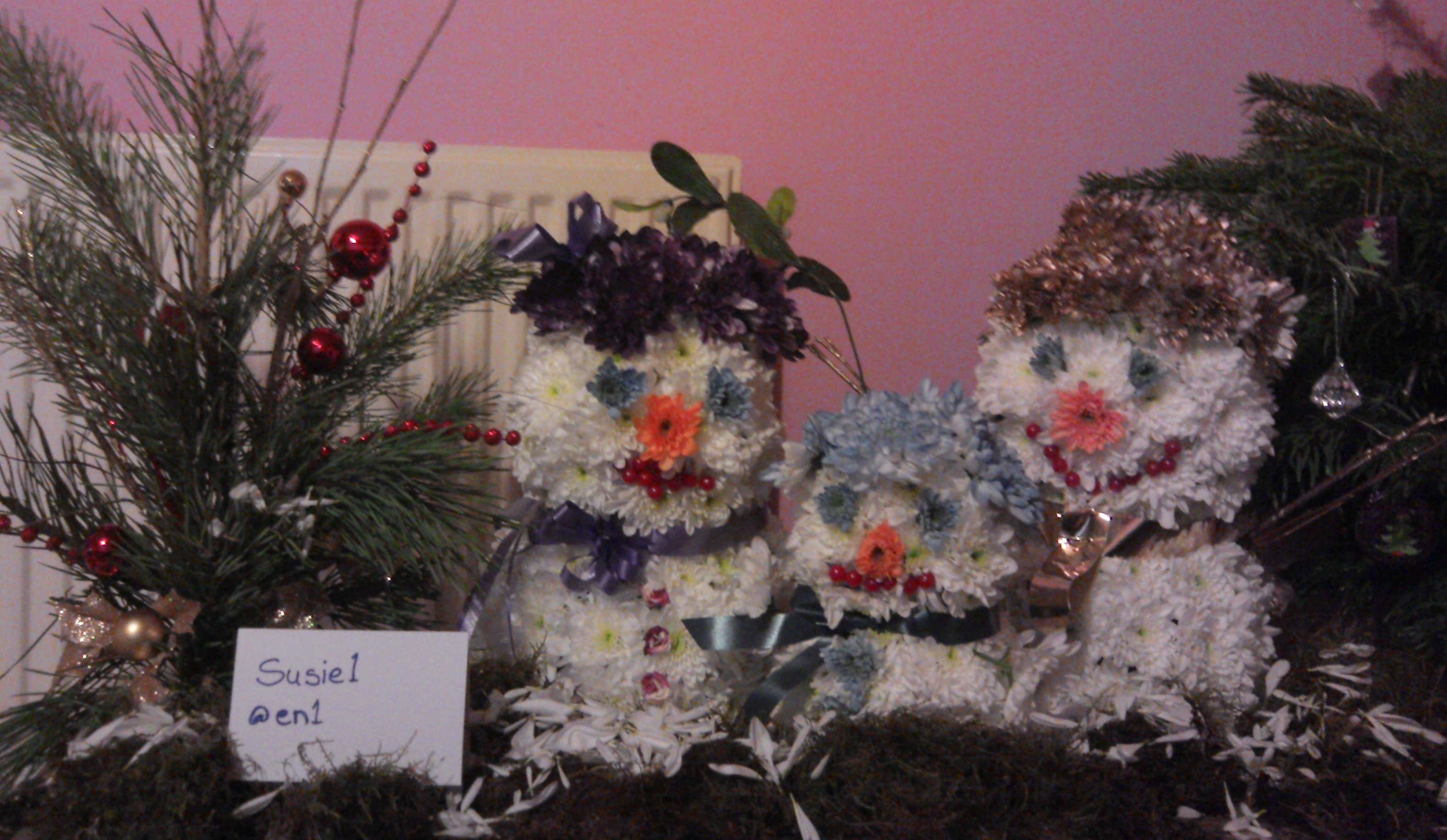 Hopefully I've done this right This is my Snowfamily - made out of Chrysanthemums.