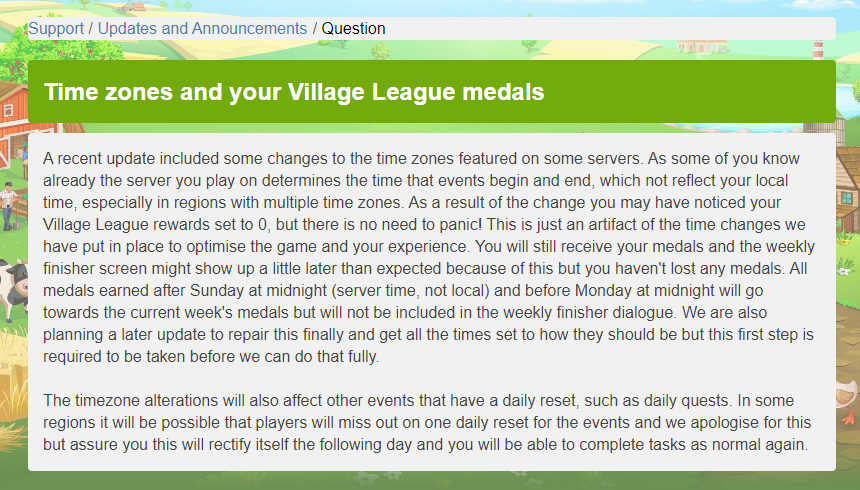 An edit to the Hotfix notes, it should have said new upgrade level on the Grand Farm House not the Grand Farmhouse (names not at all confusing there) - It is the new one that is the reward in the WWC & not the farmhouse on your main farm. Apologies for the mixup.