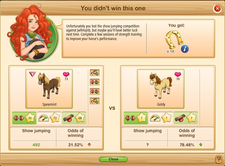 I do sometimes lose to lower level horses and occasionally beat the big boys but it is more usual to be the other way round. I will always choose to challenge a horse of lower level than mine rather than one of higher level because I do have a better chance of winning, it's not a sure thing, but definitely a better chance.