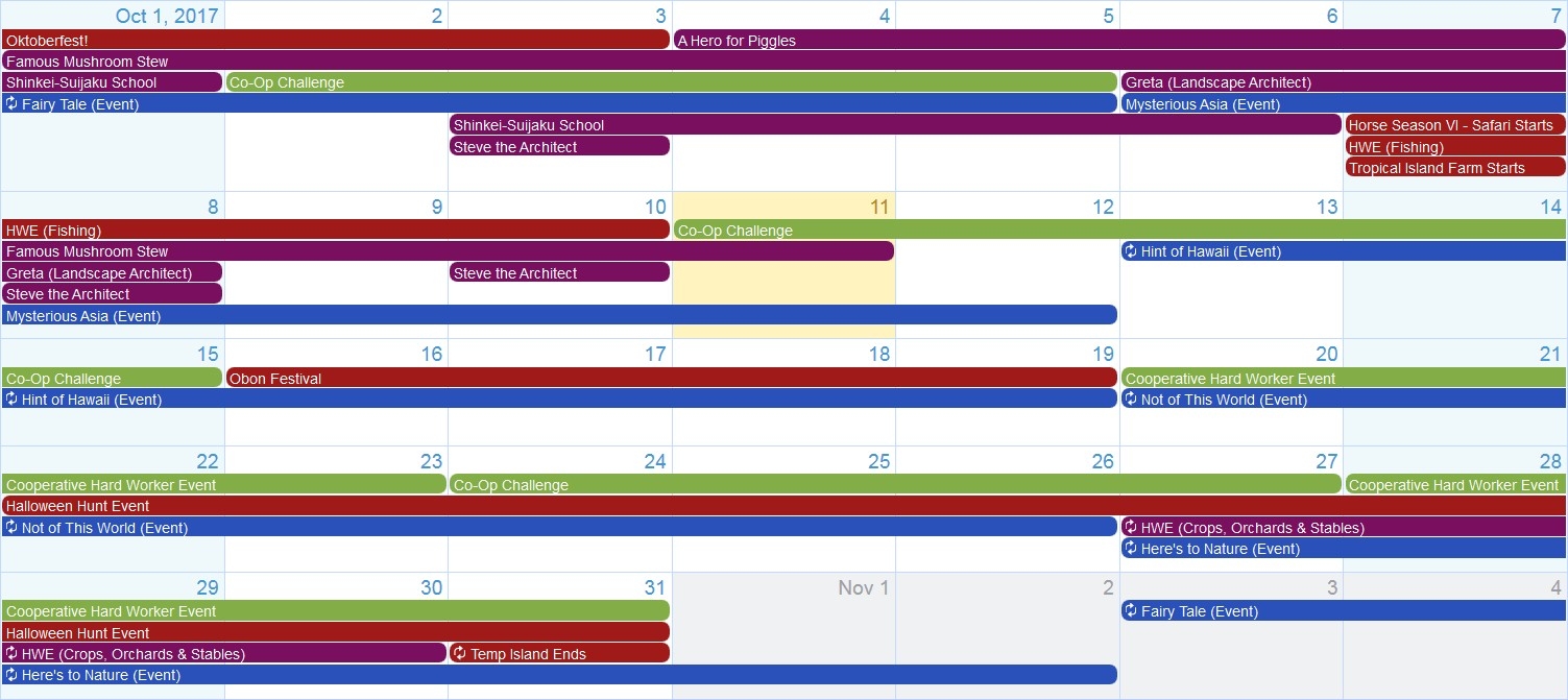 {Update: Link to live Calendar here: https://teamup.com/ks54bc4943072584c0}