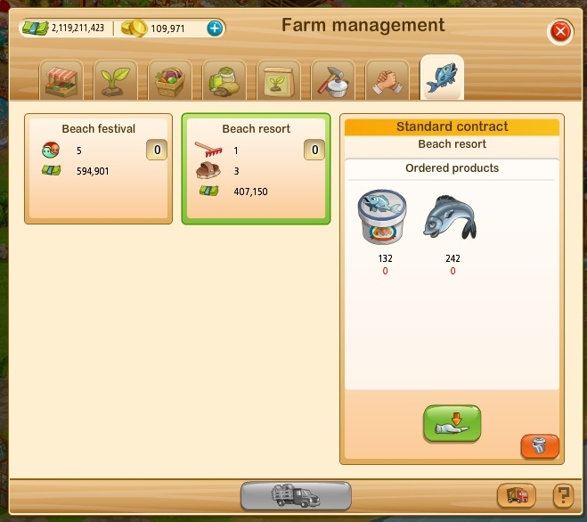 Wow, I can't believe I wasted soooo much of my money and time on the deep sea fishing. Horrible thing to do Big Farm. I'm not wasting any more money on it. It cost a fortune to load the boats and send them out and for what??? No profit now. A lot of us could care less about the coins and other prizes Big Farm thinks are so great. I'm actually just about done with this game, period.
