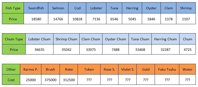 Me thinks GGS values their fluff way, way too highly (these are fish market values not necessarily what the item is "valued" at or costs elsewhere in the game)