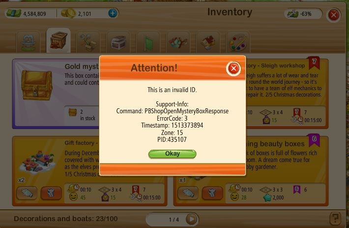Seems two farms got too many gift packages. And TRY to use something you really shouldn't have got only brings up an error. I don't know if, when, or how GG will fix this. Be nice to know what I actually have and what is a ghost.